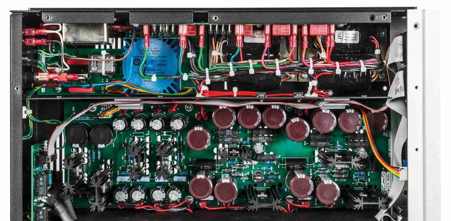 - Точно стабилизированные экранированные источники питания с каскадным включением и конфигурацией «двойное моно» для снижения шума, пленочные шунты для качественной работы на высоких частотах