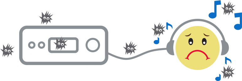 Если вы прикасаетесь к устройству, повышается ли уровень гула, шипения или жужжания? Да, в большинстве случаев это, по всей вероятности, связано с отсутствием контакта заземления, который обычно экранирует систему от такого рода помех и устраняет шумы.