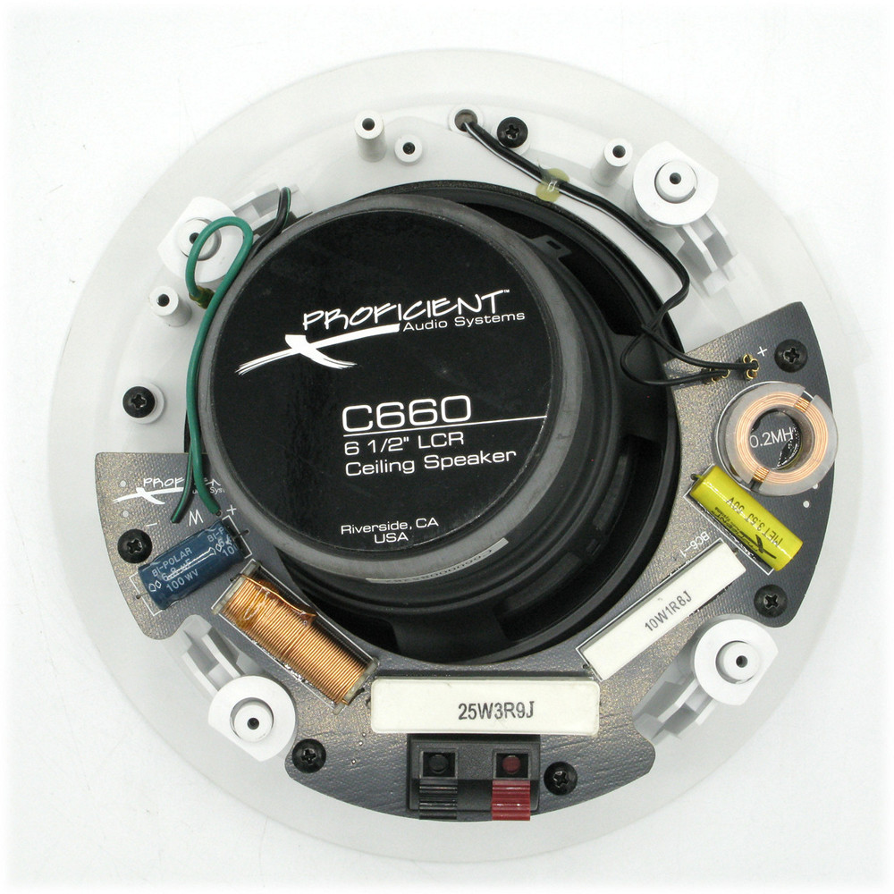 Компания Proficient разработала модель C660 для установки непосредственно над телевизором, поэтому она имеет наклон ее динамиков на 15 градусов в сторону слушателя, чтобы обеспечить тот же эффект направленности, что и у обычных корпусных или встроенных в стену акустических систем домашнего кинотеатра. Мелодичный и точный алюминиевый купольный твитер поворачивается для точной настройки, а 6½-дюймовый графитовый вуфер обеспечивает чистый и мощный бас.