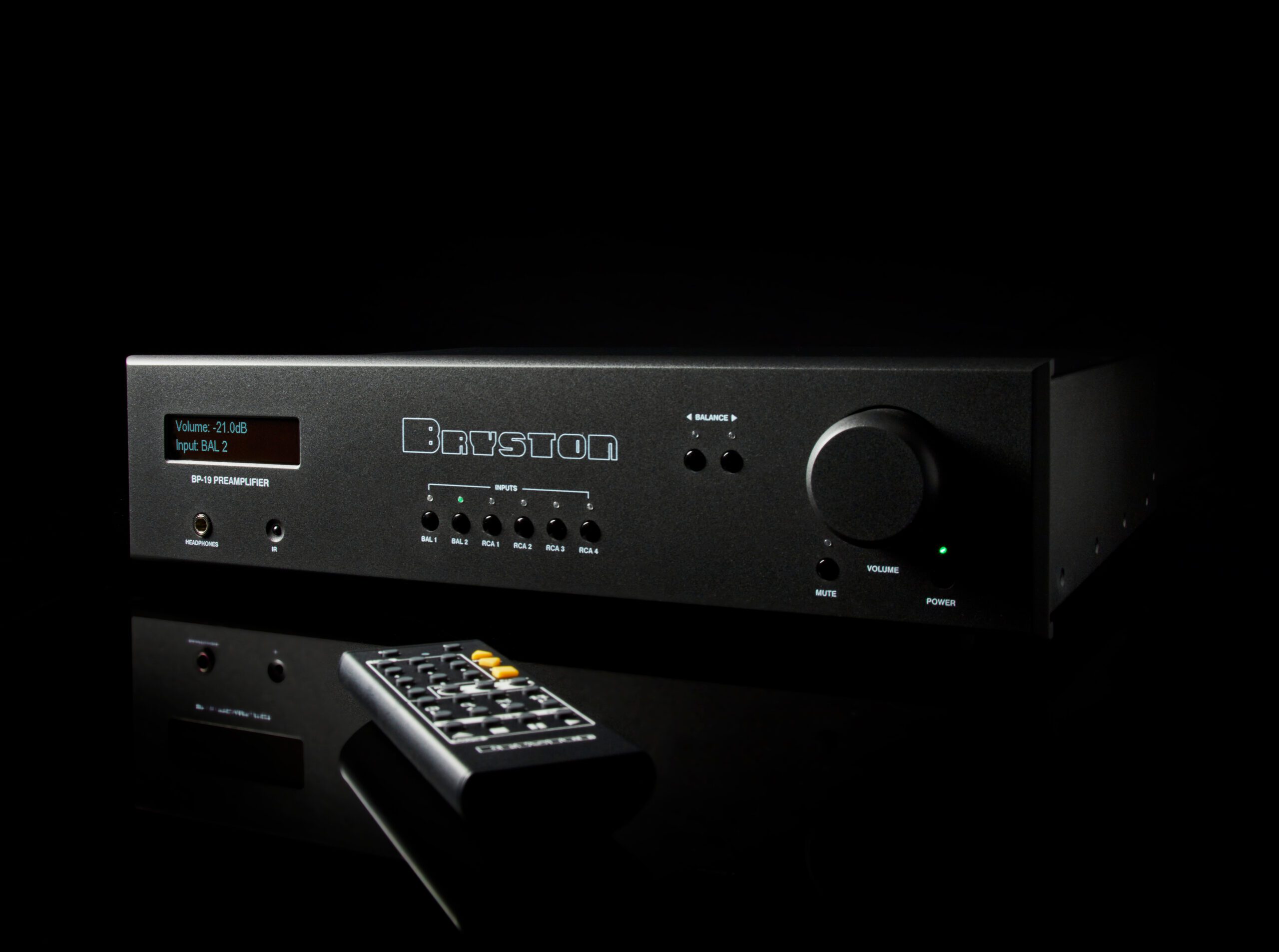 Посмотрим на Bryston BP-19 еще внимательнее, сделаем вид, будто с первого раза не рассмотрели, прищурим глаза и подвинем голову поближе. Вот это — лицевая панель. Она выглядит как лицевая панель, на которой есть кнопки. И там действительно есть кнопки, которые работают прямолинейно и предсказуемо — они переключают входы.